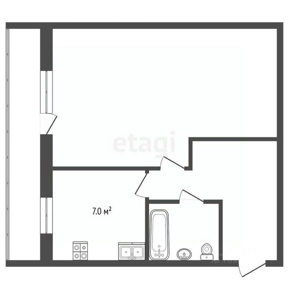 Объект отличается выгодным сочетанием уютных размеров и продуманной планировки, которая включает изолированную комнату и функциональную кухню.