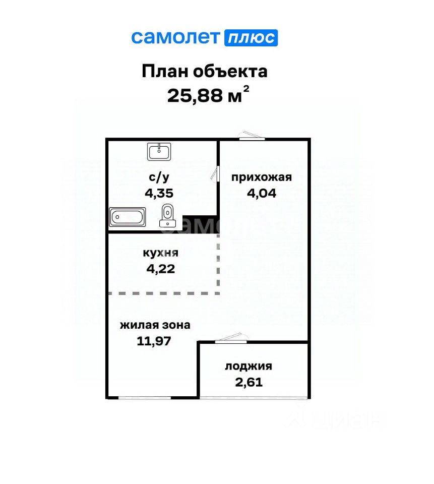 - расположена на 6 этаже, общая площадь 26.3 кв.м оптимальное пространство для комфортной жизни!