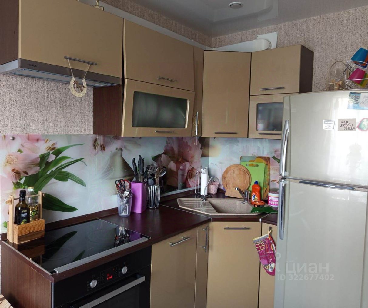 - кухонный гарнитур со встроенной техникой (посудомоечная машина, варочная поверхность и духовая печь), холодильник;