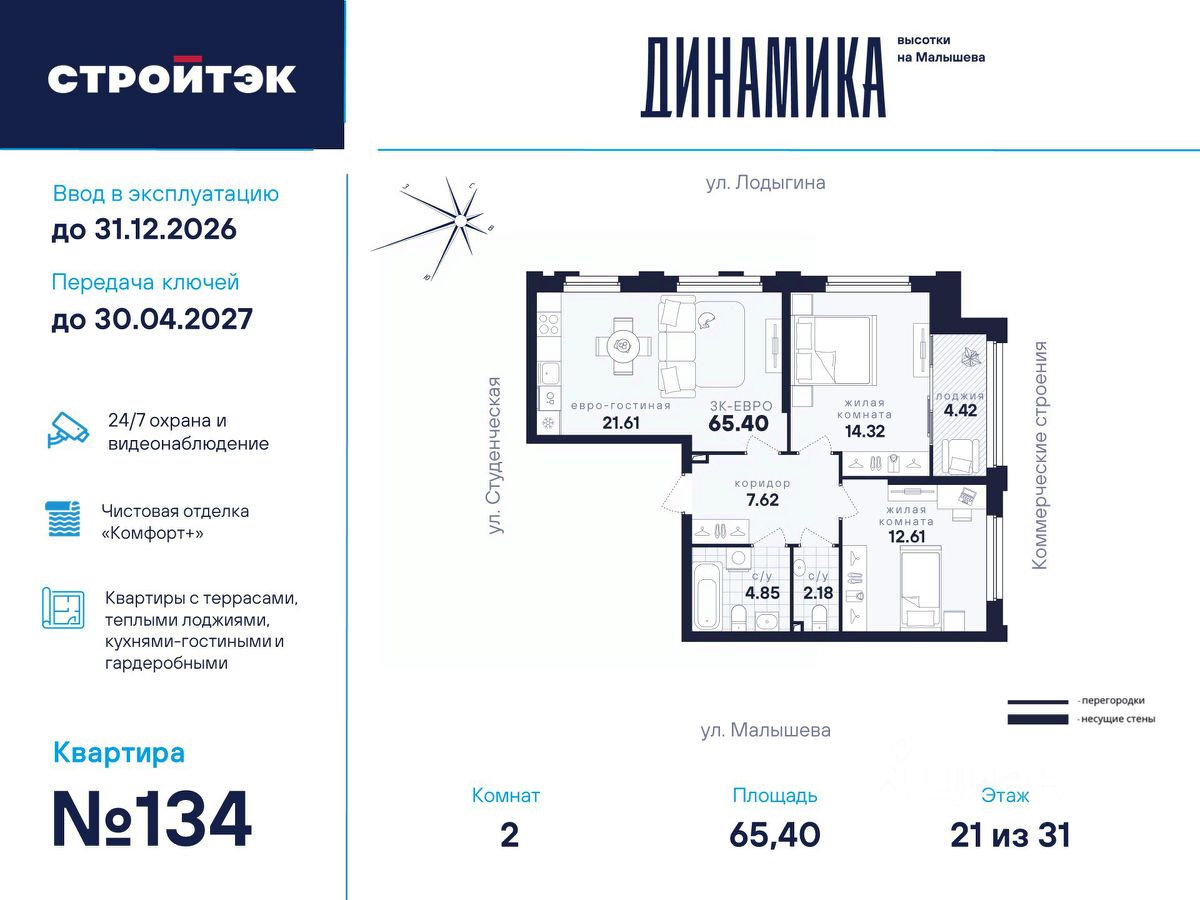 В Динамике улучшенный стандарт отделки "Комфорт+". Помимо привычных сантехники и электрики, в него входят оконные стёкла Energy Light, которые помогают сохранять комфортную температуру, приточные клапаны вентиляции Air-Box и детские замки, особо прочный ламинат 33 класса и устойчивые к многократной покраске виниловые обои. Белые межкомнатные двери и плинтусы лаконично подчеркнут любую цветовую гамму, а надёжная сейф-дверь добавит спокойствия и беззаботных моментов.