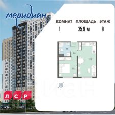 Квартира располагается на 9 этаже 24-этажного дома в ЖК Меридиан.