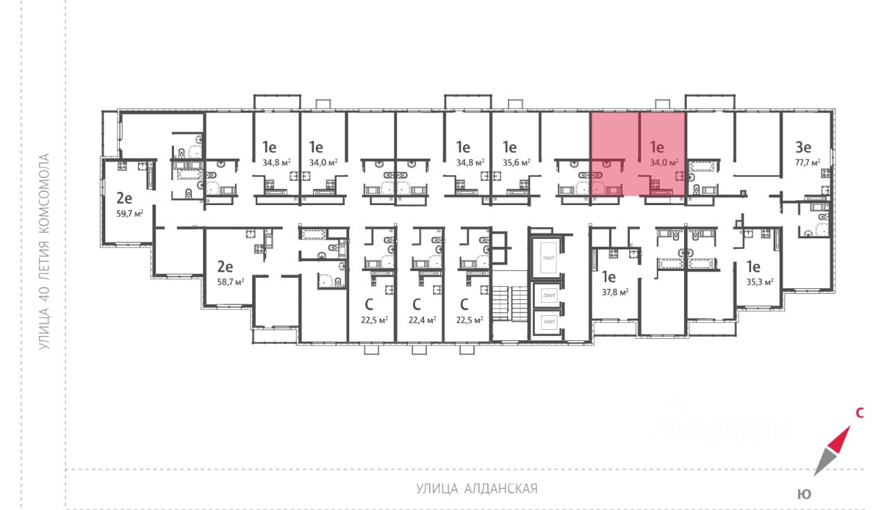 Квартира располагается на 19 этаже 25-этажного дома в ЖК Малахит.