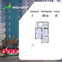 Квартира располагается на 25 этаже 25-этажного дома в ЖК Малахит.