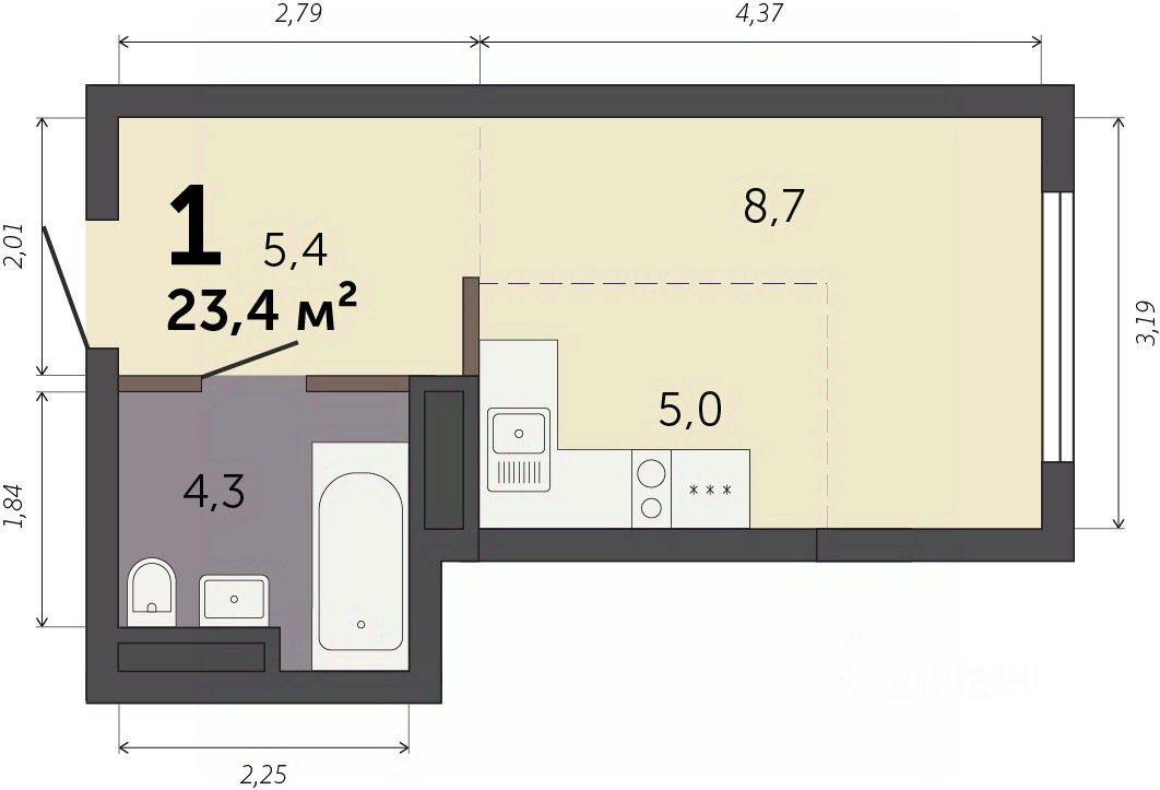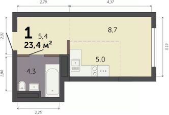 23,4 м²
