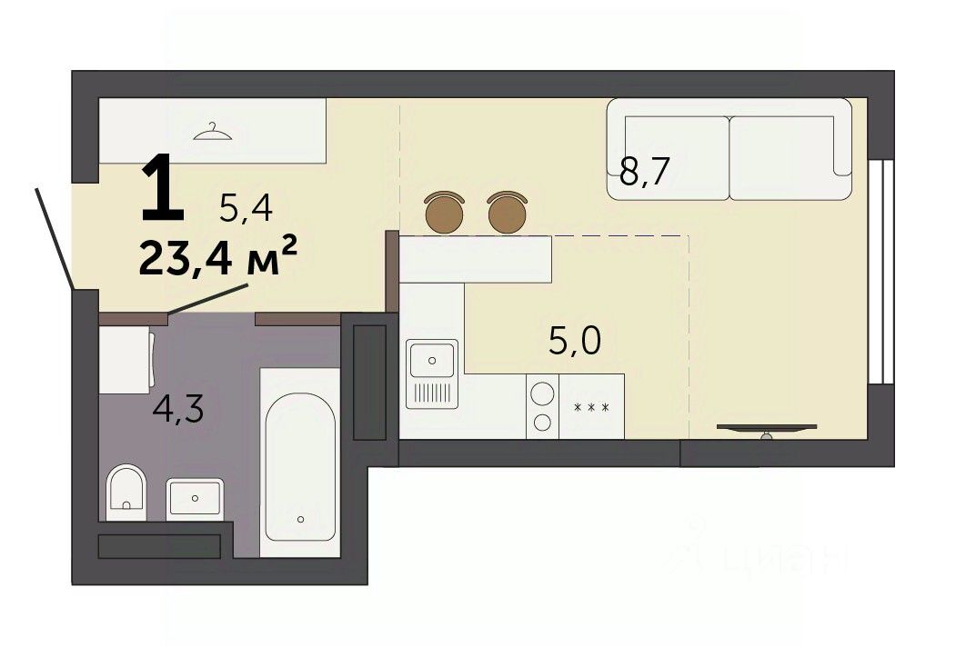 Продаётся студия в строящемся доме (Секция 1.1), срок сдачи: I-кв. 2028, общей площадью 23.4 кв.м., на 12 этаже. Новый жилой комплекс "Парк Культуры" от застройщика "СЗ Новый Дом" расположен по адресу: г. Екатеринбург, Базовый переулок.