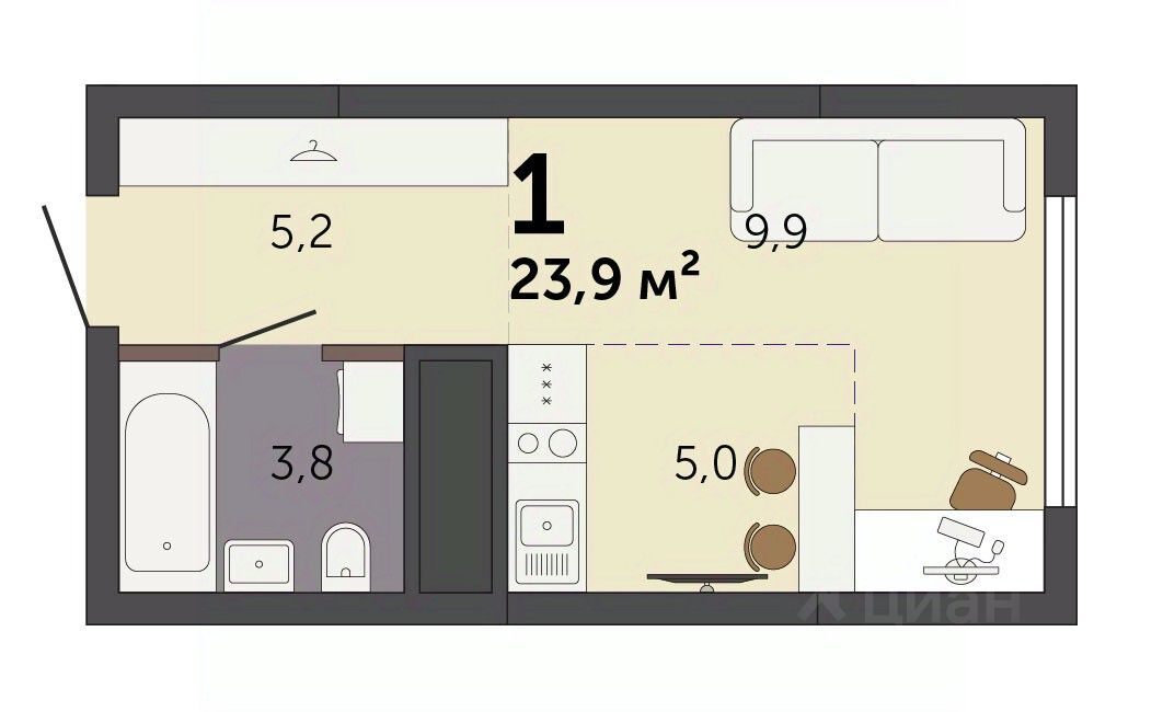Продаётся студия в строящемся доме (Секция 1.1), срок сдачи: I-кв. 2028, общей площадью 23.9 кв.м., на 17 этаже. Новый жилой комплекс "Парк Культуры" от застройщика "СЗ Новый Дом" расположен по адресу: г. Екатеринбург, Базовый переулок.