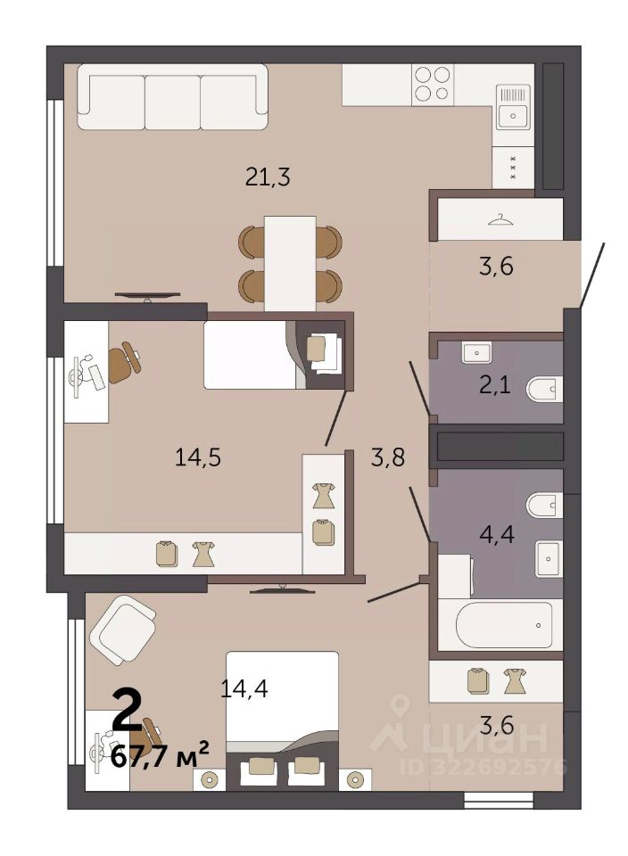 Продаётся 2-комнатная квартира в строящемся доме (Секция 1.1), срок сдачи: I-кв. 2028, общей площадью 67.7 кв.м., на 17 этаже. Новый жилой комплекс "Парк Культуры" от застройщика "СЗ Новый Дом" расположен по адресу: г. Екатеринбург, Базовый переулок.