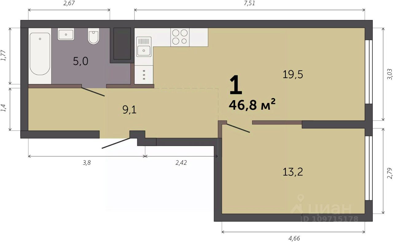 Продаётся 1-комнатная квартира в строящемся доме (Секция 1.1), срок сдачи: I-кв. 2028, общей площадью 46.8 кв.м., на 2 этаже. Новый жилой комплекс "Парк Культуры" от застройщика "СЗ Новый Дом" расположен по адресу: г. Екатеринбург, Базовый переулок.