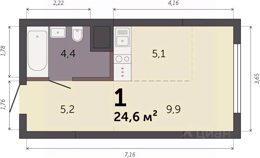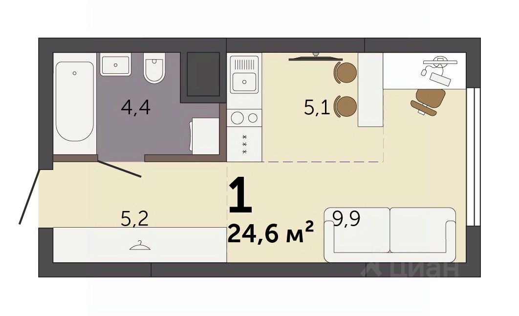Продаётся студия в строящемся доме (Секция 1.1), срок сдачи: I-кв. 2028, общей площадью 24.6 кв.м., на 2 этаже. Новый жилой комплекс "Парк Культуры" от застройщика "СЗ Новый Дом" расположен по адресу: г. Екатеринбург, Базовый переулок.