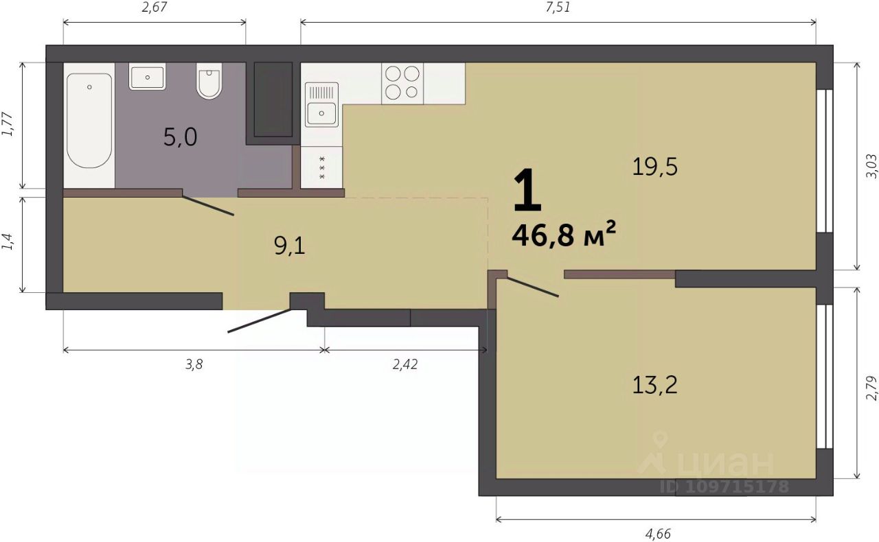Продаётся 1-комнатная квартира в строящемся доме (Секция 1.1), срок сдачи: I-кв. 2028, общей площадью 46.8 кв.м., на 5 этаже. Новый жилой комплекс "Парк Культуры" от застройщика "СЗ Новый Дом" расположен по адресу: г. Екатеринбург, Базовый переулок.
