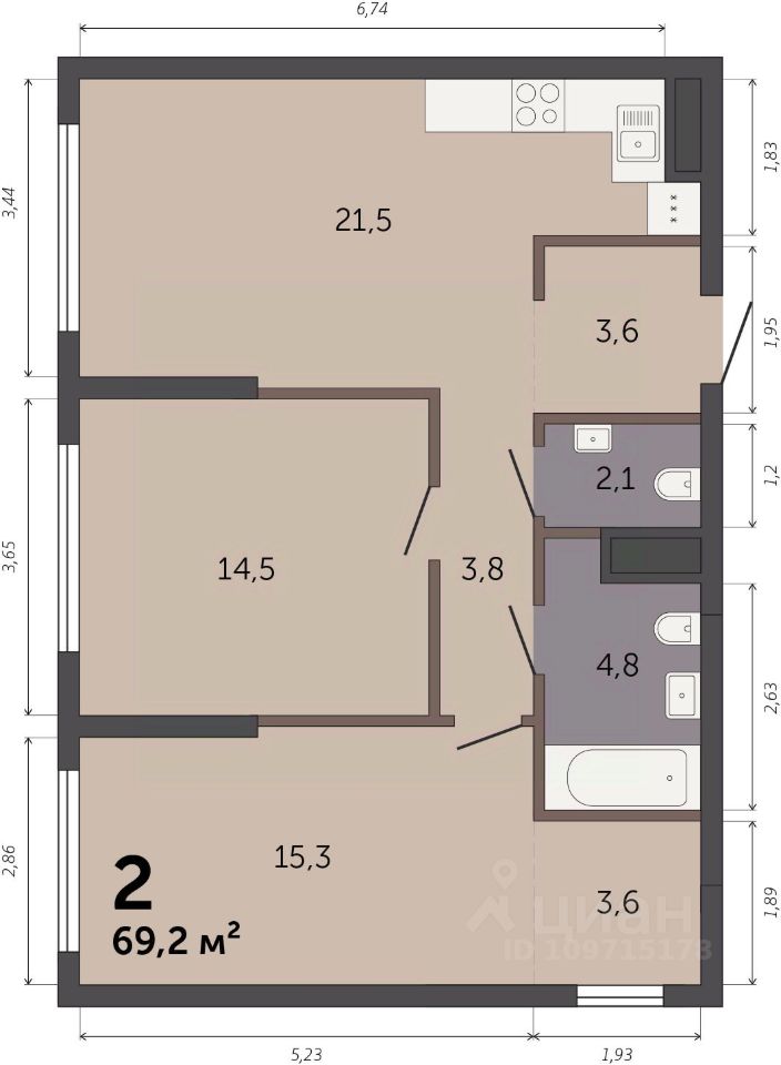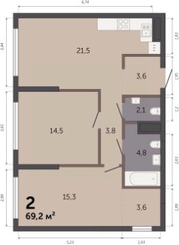 69,2 м²