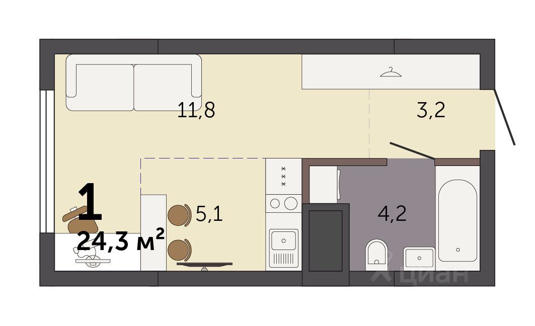 Продаётся студия в строящемся доме (Секция 1.1), срок сдачи: I-кв. 2028, общей площадью 24.3 кв.м., на 5 этаже. Новый жилой комплекс "Парк Культуры" от застройщика "СЗ Новый Дом" расположен по адресу: г. Екатеринбург, Базовый переулок.