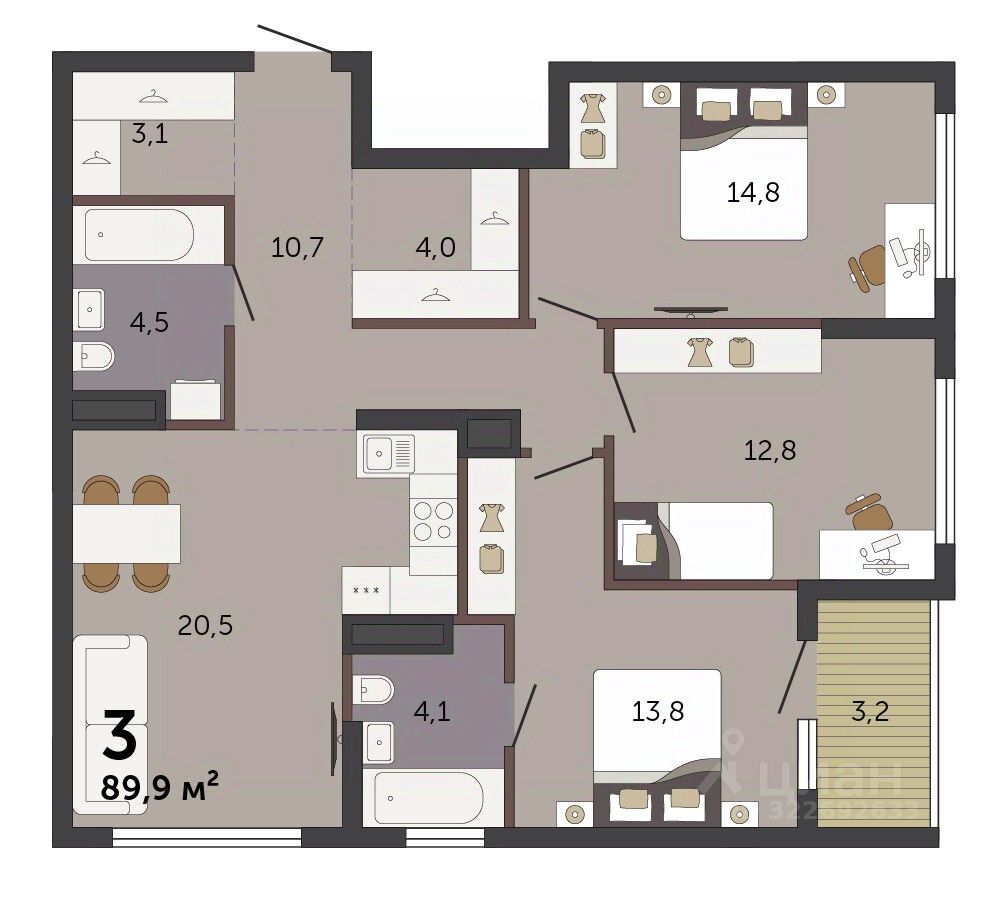 Продаётся 3-комнатная квартира в строящемся доме (Секция 1.1), срок сдачи: I-кв. 2028, общей площадью 89.9 кв.м., на 13 этаже. Новый жилой комплекс "Парк Культуры" от застройщика "СЗ Новый Дом" расположен по адресу: г. Екатеринбург, Базовый переулок.
