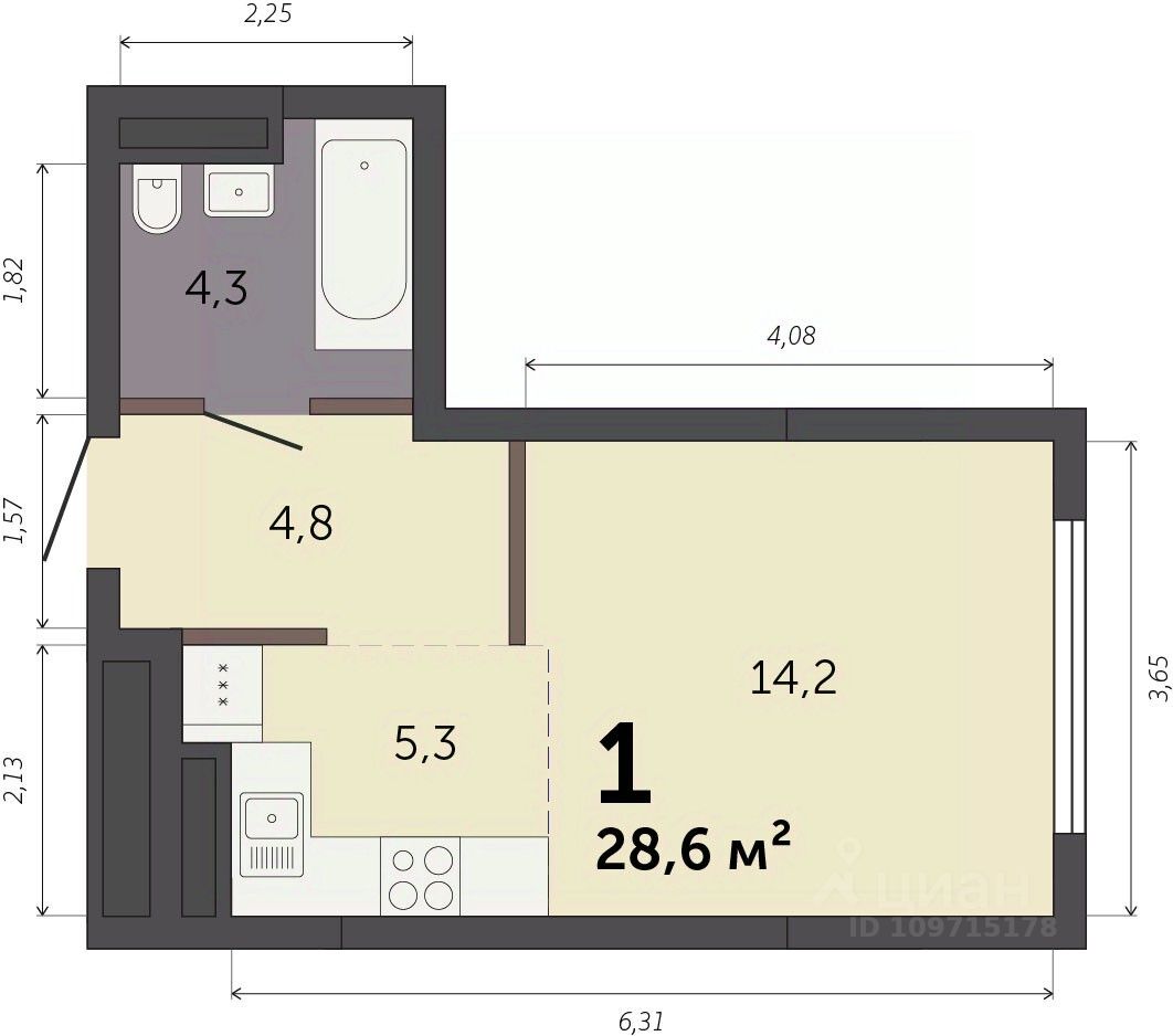 28,6 м²