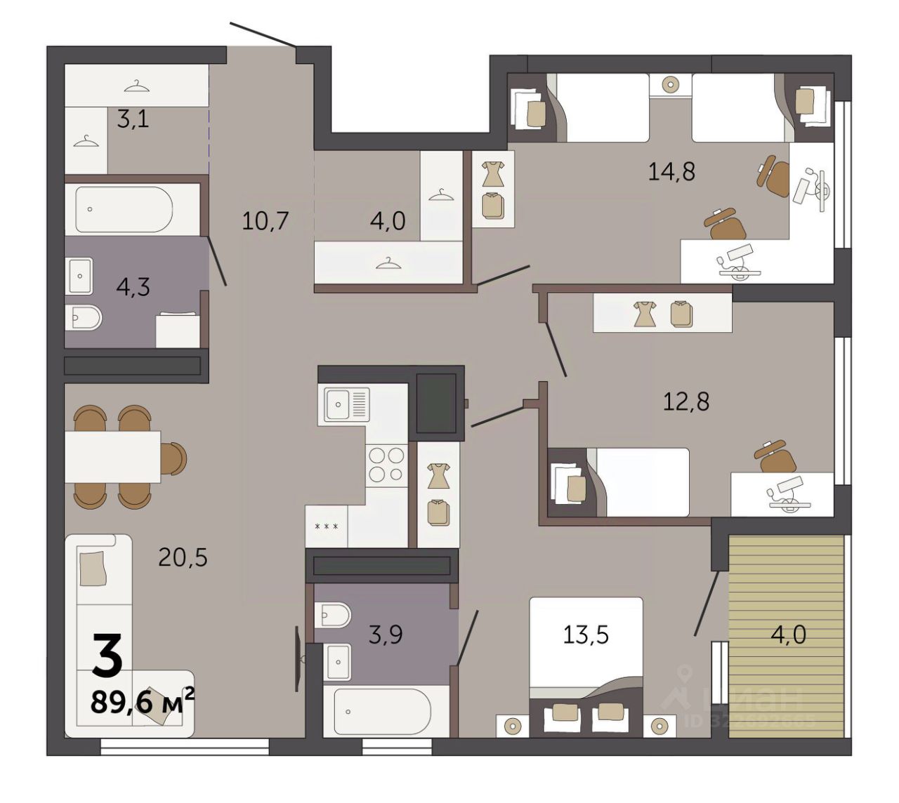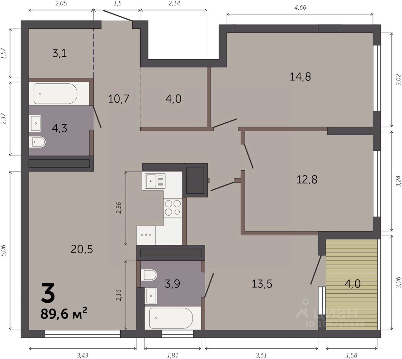 Продаётся 3-комнатная квартира в строящемся доме (Секция 1.1), срок сдачи: I-кв. 2028, общей площадью 89.6 кв.м., на 19 этаже. Новый жилой комплекс "Парк Культуры" от застройщика "СЗ Новый Дом" расположен по адресу: г. Екатеринбург, Базовый переулок.