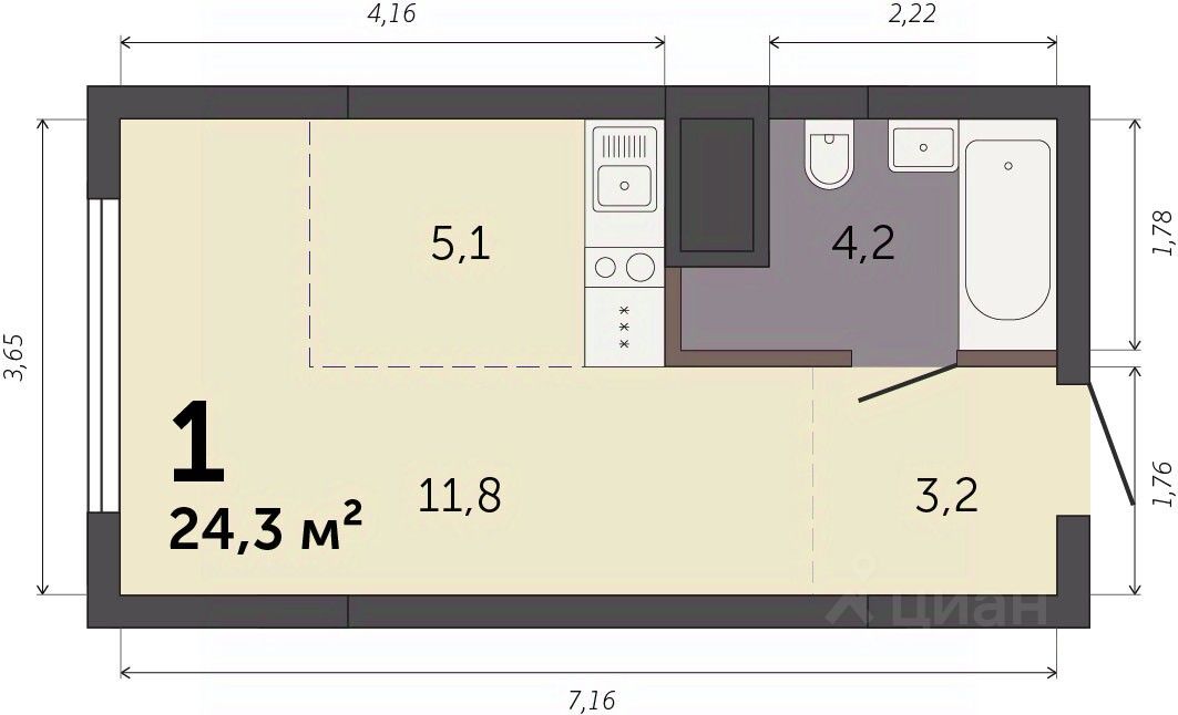 Продаётся студия в строящемся доме (Секция 1.1), срок сдачи: I-кв. 2028, общей площадью 24.3 кв.м., на 12 этаже. Новый жилой комплекс "Парк Культуры" от застройщика "СЗ Новый Дом" расположен по адресу: г. Екатеринбург, Базовый переулок.