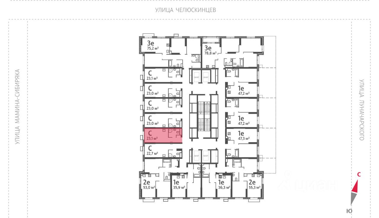 Жилой квартал расположится на участке площадью 2,6 га в границах улиц Челюскинцев Луначарского Азина Мамина-Сибиряка. Он будет состоять из шести стильных высоток, паркинга и детского сада. Общее дворовое пространство, закрытое от проезда автомобилей, обеспечит жителям безопасность и уют.