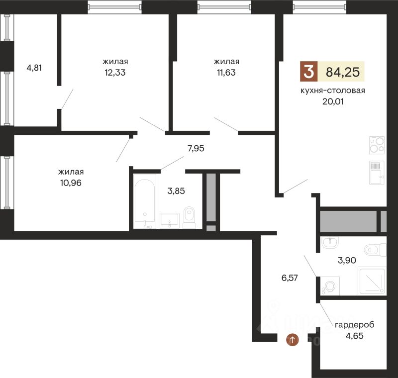 Продаётся 3-комнатная квартира в сданном доме (Куйбышева, 100 (Секция 1.2)), срок сдачи: IV-кв. 2024, общей площадью 84.25 кв.м., на 15 этаже. Новый жилой комплекс от Специализированного застройщика "Премьерстрой" расположен в Октябрьском районе Екатеринбурга на ул. Куйбышева.