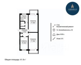 -планировка: кухня, 3 изолированные комнаты( 10,4м2.17,4м2,17,4м2), 2 балкона;