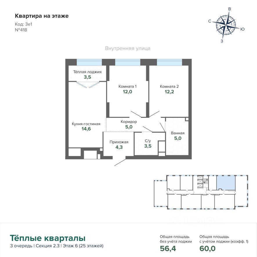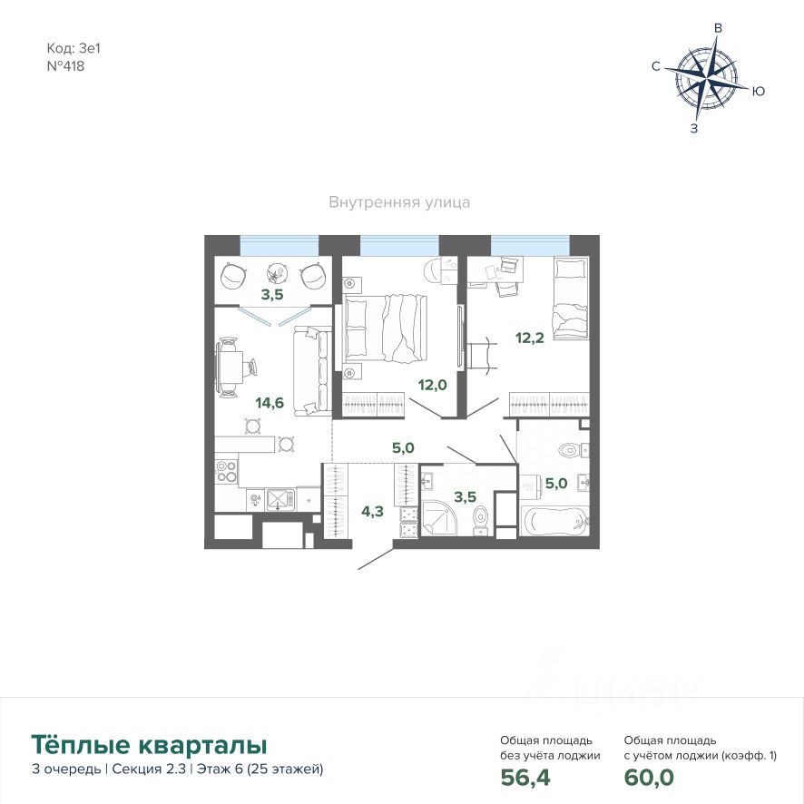 Теплые кварталы - квартальная застройка переменной этажности (от 7 до 25).Комплекс будет состоять из 5 очередей. В продаже 3 очередь, дом 2 - переменной этажности. Строительство уже ведется.