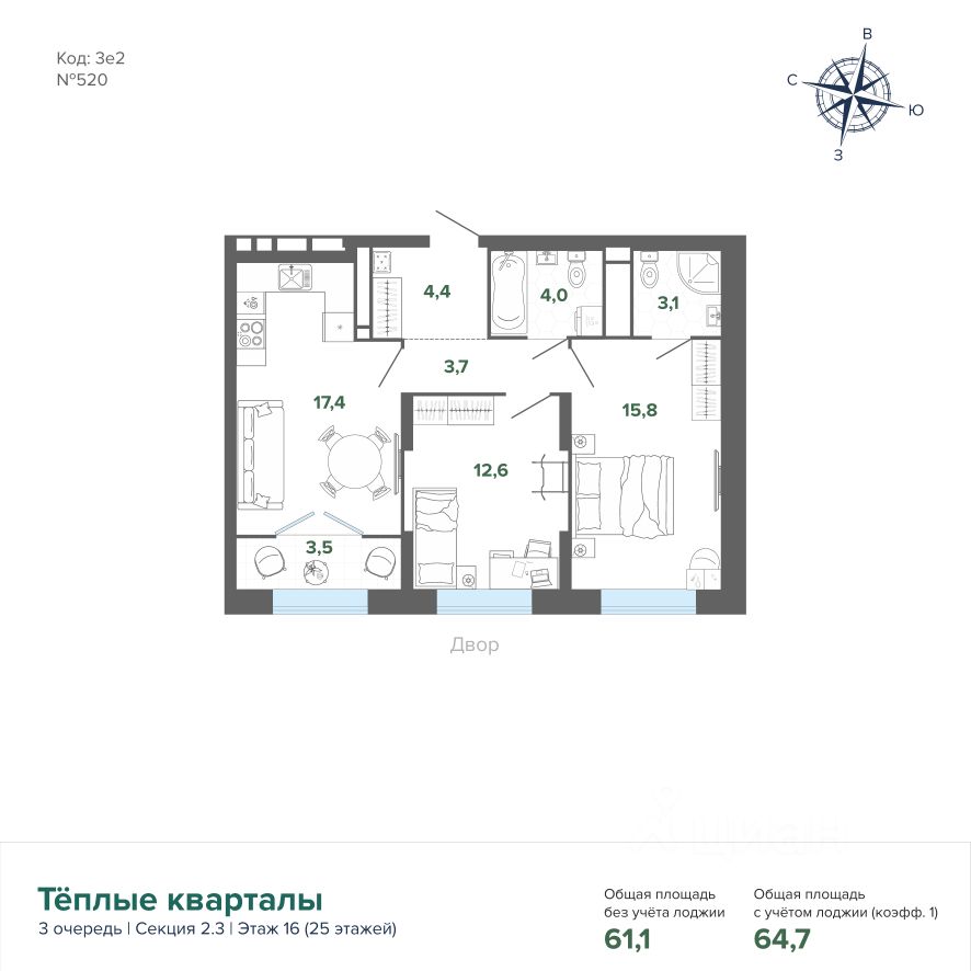 Теплые кварталы - квартальная застройка переменной этажности (от 7 до 25).Комплекс будет состоять из 5 очередей. В продаже 3 очередь, дом 2 - переменной этажности. Строительство уже ведется.