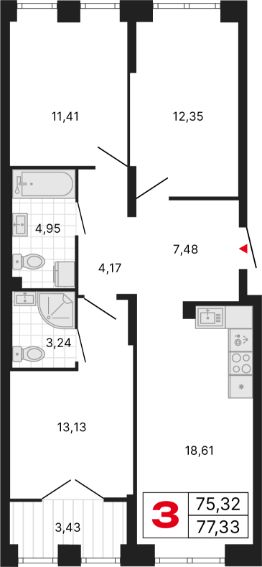 Продаётся квартира в ЖК "Тёплые кварталы". 3-комнатная квартира, 78,75 м², 375, Очередь 3, дом 2. Стоимость указана с учетом чистовой отделки.