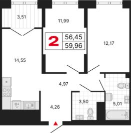 Продаётся квартира в ЖК "Тёплые кварталы". 2-комнатная квартира, 59,96 м²,  438, Очередь 3, дом 2. Стоимость указана с учетом чистовой отделки.