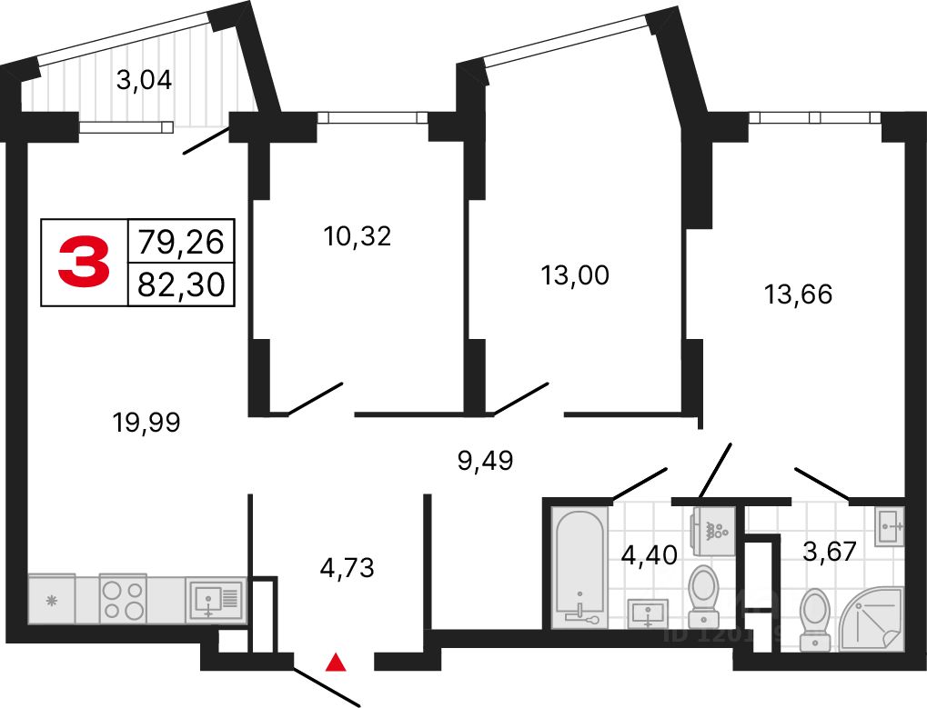 Продаётся квартира в Квартал-парк "Каменные палатки". 3-комнатная квартира, 82,17 м²,  265, Очередь 4, секция 16. Стоимость указана с учетом чистовой отделки.