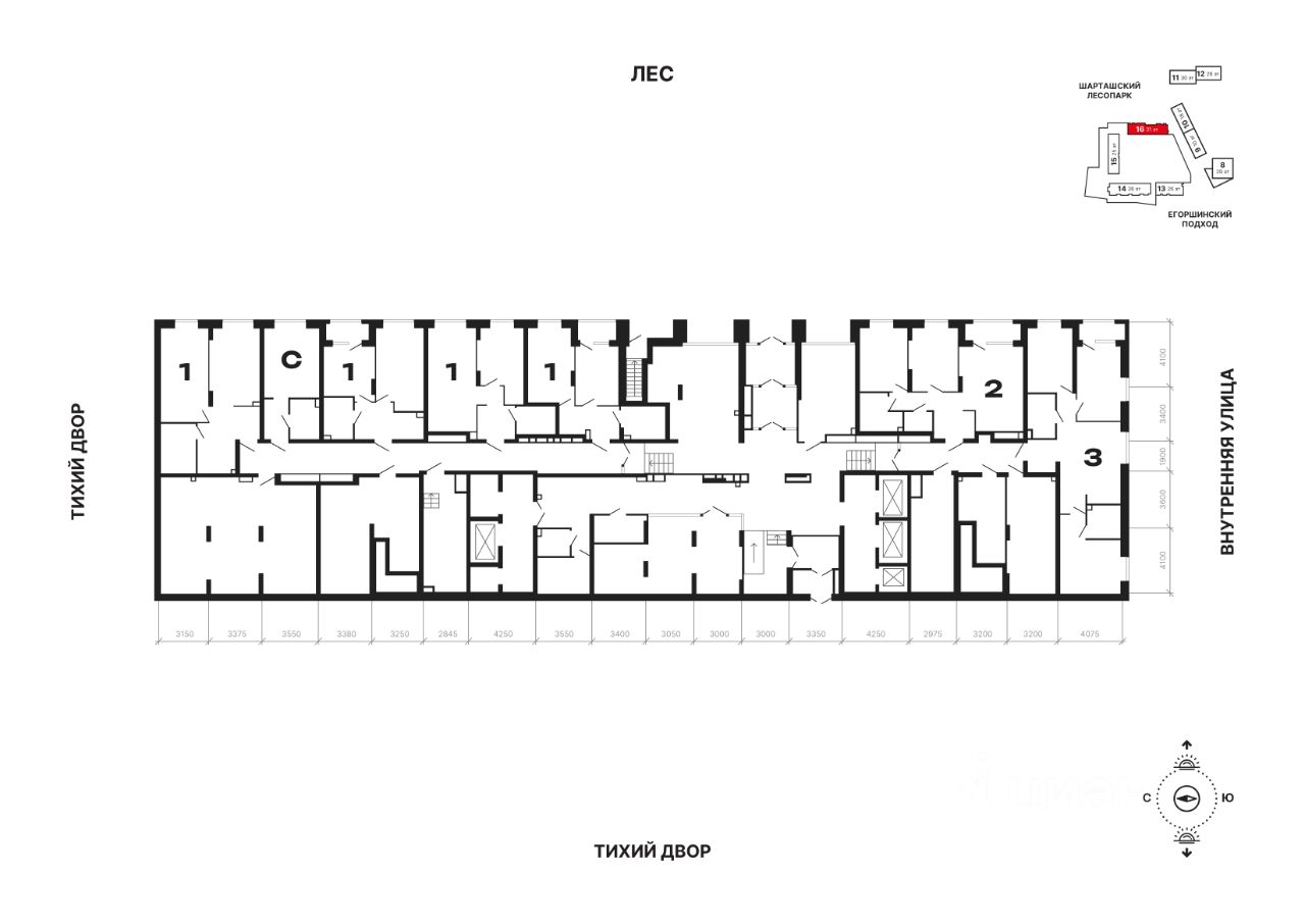 - Закрытая территория с собственным выходом в лес. Стилобат с объектами социальной и бытовой инфраструктуры, а также несколько детских площадок.