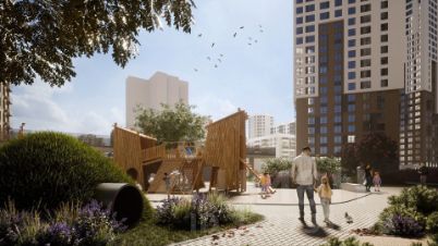 Жилой квартал расположится на участке площадью 2,6 га в границах улиц Челюскинцев Луначарского Азина Мамина-Сибиряка. Он будет состоять из шести стильных высоток, паркинга и детского сада. Общее дворовое пространство, закрытое от проезда автомобилей, обеспечит жителям безопасность и уют.