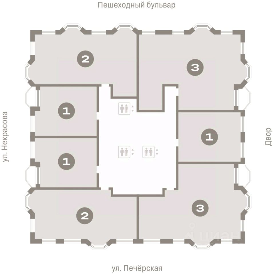 Квартира с кухней-гостиной и двумя спальнями в квартале "На Некрасова". Особенности планировки: второй санузел, предчистовая отделка, мастер-спальня.