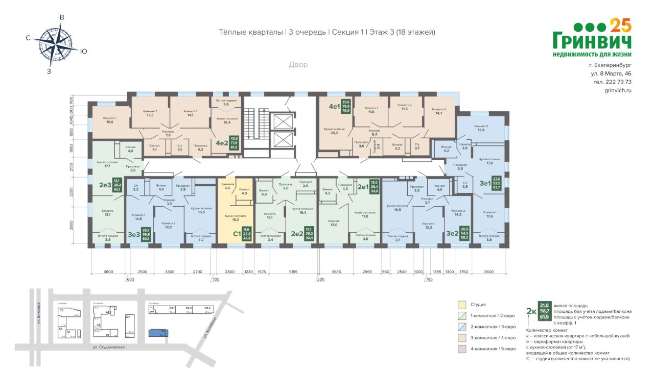 Срок сдачи дом 1 - 2 квартал 2025 года. Современный семейный ЖК "Теплые кварталы" - новый жилой комплекс повышенной комфортности на границе Втузгородка и Пионерского района (перекресток ул. Блюхера/Студенческая). Квартальная застройка переменной этажности. В предложении 3 очередь, дом 1 - 18 этажей. Одни из лучших школ города по прописке: Гимназии 43, 47 и 108; Лицей 130!Собственная котельная - горячая вода и отопление в любое время года по потребности жильцов! Механическая вентиляция - круглогодичная бесперебойная работа вентиляции!Ипотека от застройщика. Материнский капитал при покупке использовать можно. Уникальная рекреационная инфраструктура: Рядом три топовых ВУЗа: Гуманитарный Университет, Юридический Университет, УрФУ, а также Сунц УрФу Одни из лучших школ города по прописке: Гимназии 43, 47 и 108; Лицей 130; Близость озера Шарташ, Основинского парка и Дендрария располагают к ежедневным прогулкам. Рядом с кварталом расположен ЦК Урал, где все виды спортивного и творческого развития: бассейн, футбольное поле, кружки, секции для детей и взрослых. Поблизости ТРЦ Парк Хаус и Апельсин: кинотеатр, фитнес-центр, рестораны и популярные магазины. У дома остановки трамвая и автобуса. Для автомобилистов - удобный выезд как в центр, так и на объездную дорогу. Преимущества квартир: Качественная чистовая отделка: Ламинат 32 класса, обои под покраску, потолок обои, балконная дверь с остеклением, санузлы - умывальник со смесителем, унитаз. Счетчики на э/э, воду и тепло - ежемесячная экономия на коммунальных платежах;Горизонтальная разводка систем отопления - свободные стены, эргономичные планировки с максимальным полезным пространством: квартиры с мастер-спальнями; Удобное зонированием на кухню и гостевую зону в кухне-гостиной;Ниши для шкаф-купе и гардеробные в прихожих;Окна на 2 и 3 стороны в многокомнтаных квартирах. Преимущества дома: Срок сдачи дом 1 - 2 квартал 2025 года. Современный семейный ЖК "Теплые кварталы" - новый жилой комплекс повышенной комфортности на границе Втузгородка и Пионерского района (перекресток ул. Блюхера/Студенческая). Квартальная застройка переменной этажности. В предложении 3 очередь, дом 1 - 18 этажей. - Одни из лучших школ города по прописке: Гимназии 43, 47 и 108; Лицей 130! - Собственная котельная - горячая вода и отопление в любое время года по потребности жильцов! - Механическая вентиляция - круглогодичная бесперебойная работа вентиляции! - Ипотека от застройщика. - Материнский капитал при покупке использовать можно. - Уникальная рекреационная инфраструктура: Рядом три топовых ВУЗа: Гуманитарный Университет, Юридический Университет, УрФУ, а также Сунц УрФу - Близость озера Шарташ, Основинского парка и Дендрария располагают к ежедневным прогулкам. - Рядом с кварталом расположен ЦК Урал, где все виды спортивного и творческого развития: бассейн, футбольное поле, кружки, секции для детей и взрослых. - Поблизости ТРЦ Парк Хаус и Апельсин: кинотеатр, фитнес-центр, рестораны и популярные магазины. У дома остановки тра