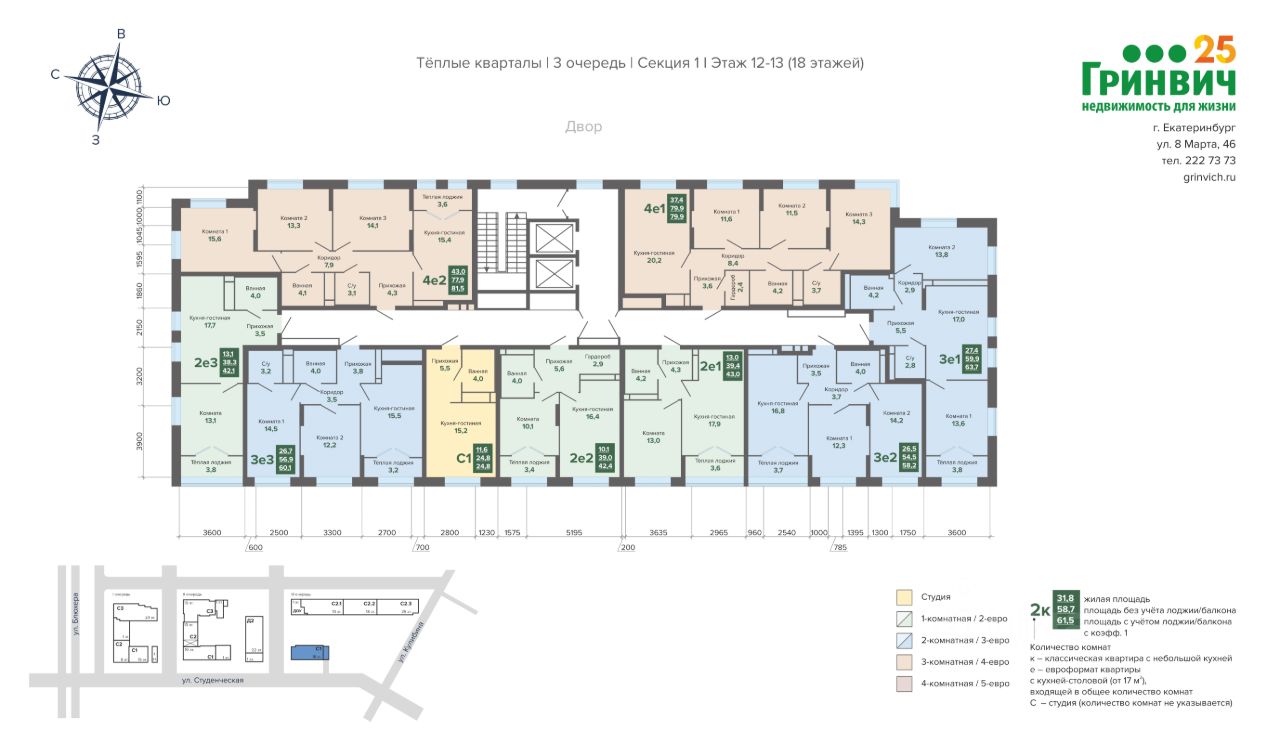Срок сдачи дом 1 - 2 квартал 2025 года. Современный семейный ЖК "Теплые кварталы" - новый жилой комплекс повышенной комфортности на границе Втузгородка и Пионерского района (перекресток ул. Блюхера/Студенческая). Квартальная застройка переменной этажности. В предложении 3 очередь, дом 1 - 18 этажей. Одни из лучших школ города по прописке: Гимназии 43, 47 и 108; Лицей 130!Собственная котельная - горячая вода и отопление в любое время года по потребности жильцов! Механическая вентиляция - круглогодичная бесперебойная работа вентиляции!Ипотека от застройщика. Материнский капитал при покупке использовать можно. Уникальная рекреационная инфраструктура: Рядом три топовых ВУЗа: Гуманитарный Университет, Юридический Университет, УрФУ, а также Сунц УрФу Одни из лучших школ города по прописке: Гимназии 43, 47 и 108; Лицей 130; Близость озера Шарташ, Основинского парка и Дендрария располагают к ежедневным прогулкам. Рядом с кварталом расположен ЦК Урал, где все виды спортивного и творческого развития: бассейн, футбольное поле, кружки, секции для детей и взрослых. Поблизости ТРЦ Парк Хаус и Апельсин: кинотеатр, фитнес-центр, рестораны и популярные магазины. У дома остановки трамвая и автобуса. Для автомобилистов - удобный выезд как в центр, так и на объездную дорогу. Преимущества квартир: Качественная чистовая отделка: Ламинат 32 класса, обои под покраску, потолок обои, балконная дверь с остеклением, санузлы - умывальник со смесителем, унитаз. Счетчики на э/э, воду и тепло - ежемесячная экономия на коммунальных платежах;Горизонтальная разводка систем отопления - свободные стены, эргономичные планировки с максимальным полезным пространством: квартиры с мастер-спальнями; Удобное зонированием на кухню и гостевую зону в кухне-гостиной;Ниши для шкаф-купе и гардеробные в прихожих;Окна на 2 и 3 стороны в многокомнтаных квартирах. Преимущества дома: Срок сдачи дом 1 - 2 квартал 2025 года. Современный семейный ЖК "Теплые кварталы" - новый жилой комплекс повышенной комфортности на границе Втузгородка и Пионерского района (перекресток ул. Блюхера/Студенческая). Квартальная застройка переменной этажности. В предложении 3 очередь, дом 1 - 18 этажей. - Одни из лучших школ города по прописке: Гимназии 43, 47 и 108; Лицей 130! - Собственная котельная - горячая вода и отопление в любое время года по потребности жильцов! - Механическая вентиляция - круглогодичная бесперебойная работа вентиляции! - Ипотека от застройщика. - Материнский капитал при покупке использовать можно. - Уникальная рекреационная инфраструктура: Рядом три топовых ВУЗа: Гуманитарный Университет, Юридический Университет, УрФУ, а также Сунц УрФу - Близость озера Шарташ, Основинского парка и Дендрария располагают к ежедневным прогулкам. - Рядом с кварталом расположен ЦК Урал, где все виды спортивного и творческого развития: бассейн, футбольное поле, кружки, секции для детей и взрослых. - Поблизости ТРЦ Парк Хаус и Апельсин: кинотеатр, фитнес-центр, рестораны и популярные магазины. У дома остановки тра
