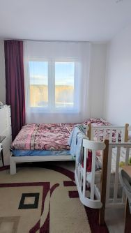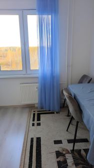 Отличное состояние: Квартира готова к заселению. Кухонный гарнитур со всем необходимым оборудованием, посудой. три вместительных шкафа, кровать, стиральная машина, ванна, раковина со шкафом, зеркало, 4 современных кухонных стула, компьютерный стол, вешалка при входе, напольная вешалка, шкаф в туалете.