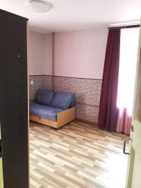 Высокие потолки (3+ м), два окна, светлая и просторная.
