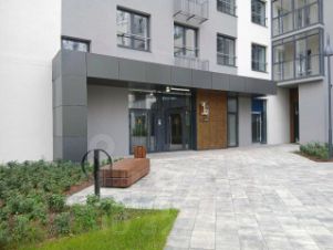 Дом построен из кирпича, закрытый двор, есть подземный паркинг, класс дома комфорт плюс. Прямо в лобби дома на втором этаже есть две террасы для отдыха с прекрасным видом, а первом этаже лобби расположена мягкая зона с камином.