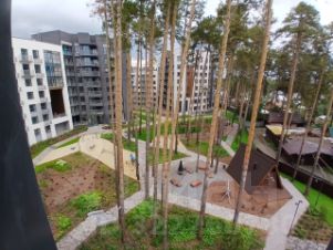 ЖК Лес состоит из нескольких домов высотой до 8 этажей с парковочным пространством и коммерческими помещениями на первых этажах. У домов комплекса территория в формате "без машин", с игровыми площадками для детей всех возрастов, также площадками для отдыха и занятий спортом, много зелени.