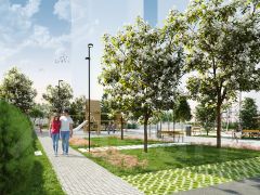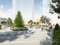 Организованы пешеходные дорожки, проведено озеленение двора. Для владельцев личного транспорта предусмотрены подземный и наземный многоуровневый паркинги.