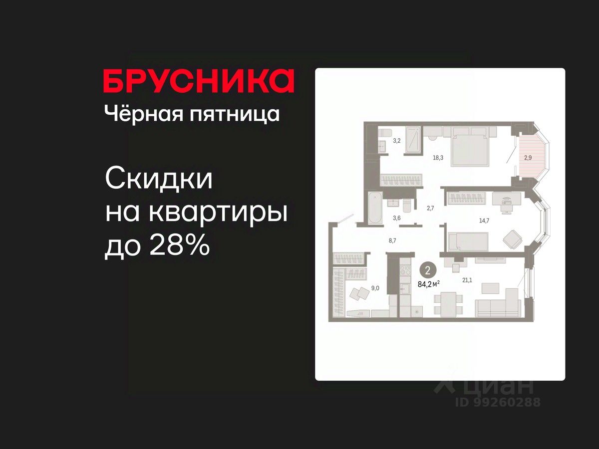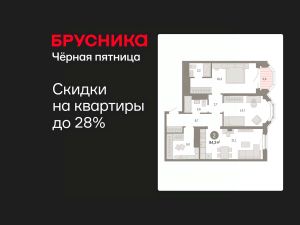 Квартира с кухней-гостиной и двумя спальнями в квартале "На Некрасова". Особенности планировки: вид во двор, лоджия, предчистовая отделка, мастер-спальня, постирочная.