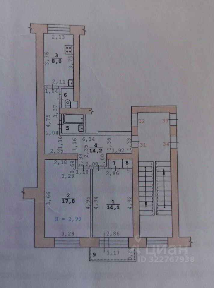 кв.м, кухня 8,0 кв.м. Перепланировок не производилось. На окнах квартиры установлены