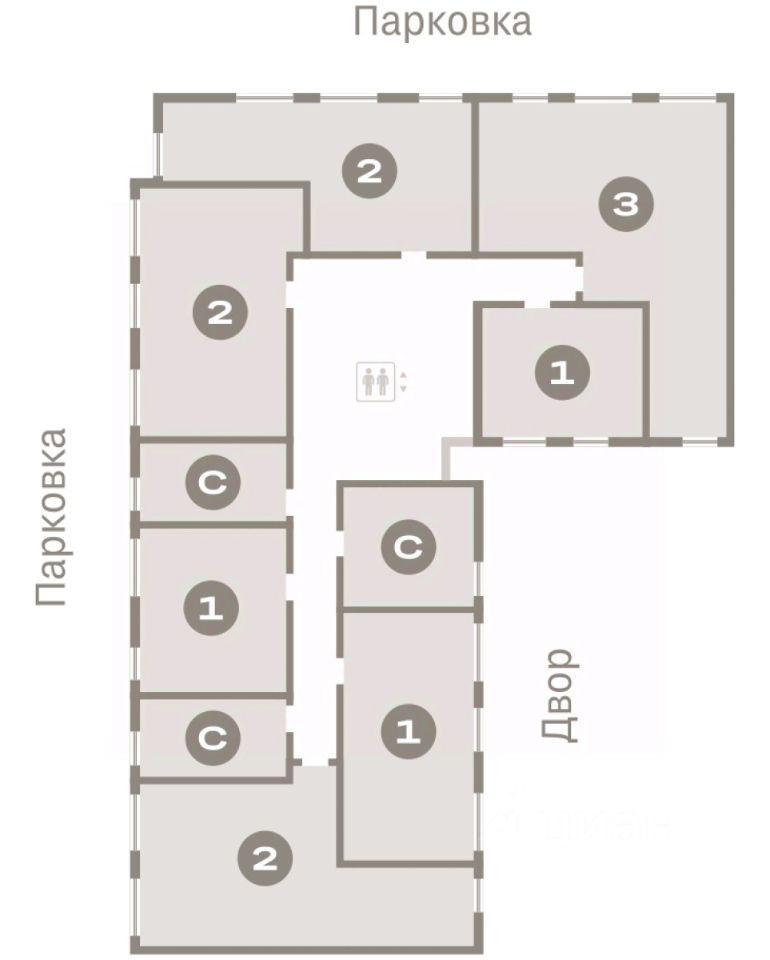 Квартира с кухней-гостиной и тремя спальнями в Бруснике в Академическом. Особенности планировки: окна на две стороны, гардеробная, вид во двор, разнесённые спальни, предчистовая отделка, мастер-спальня, балкон.