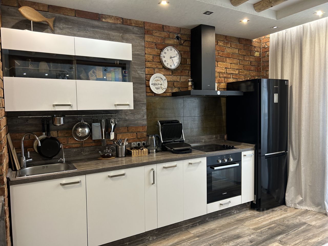 Вся качественная мебель и встроенная техника (холодильник, посудомоечная машина,стиральная машина) остаются.
