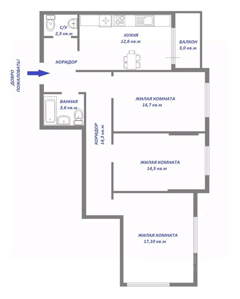 Она ждет вас. Представляю вашему вниманию просторную трехкомнатную квартиру!