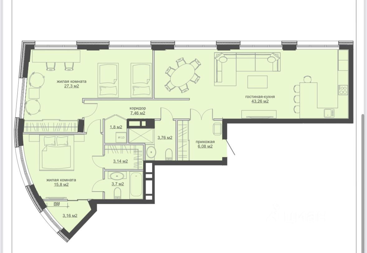 120,6 кв.м. 3к. кв. 8дом- Свободная планировка