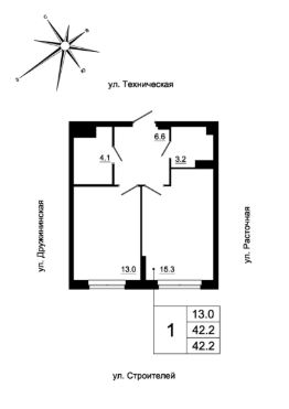Продаётся 1-комнатная квартира в сданном доме (Червонная, 18 (Дом 5.1)), срок сдачи: I-кв. 2025, общей площадью 41.1 кв.м., на 9 этаже. Гостевые автостоянки расположены вдоль улицы Технической на прилегающей к дому территории.