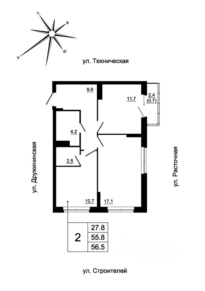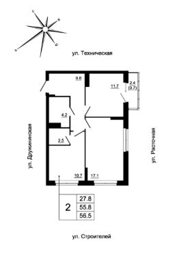 Продаётся 2-комнатная квартира в сданном доме (Червонная, 18 (Дом 5.1)), срок сдачи: I-кв. 2025, общей площадью 54.6 кв.м., на 17 этаже. Гостевые автостоянки расположены вдоль улицы Технической на прилегающей к дому территории.