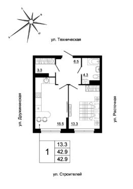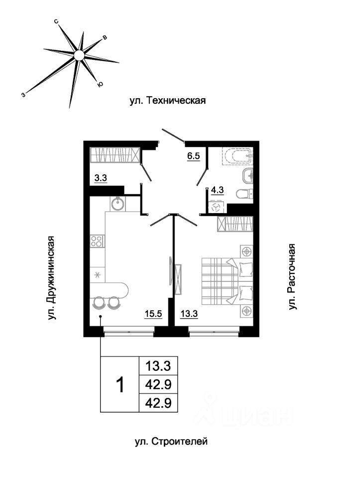 Продаётся 1-комнатная квартира в сданном доме (Червонная, 18 (Дом 5.1)), срок сдачи: I-кв. 2025, общей площадью 41.8 кв.м., на 18 этаже. Гостевые автостоянки расположены вдоль улицы Технической на прилегающей к дому территории.