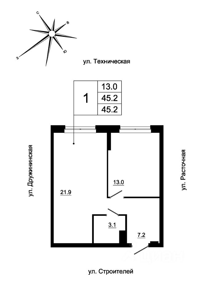 Продаётся 1-комнатная квартира в сданном доме (Червонная, 18 (Дом 5.1)), срок сдачи: I-кв. 2025, общей площадью 44.3 кв.м., на 1 этаже. Гостевые автостоянки расположены вдоль улицы Технической на прилегающей к дому территории.