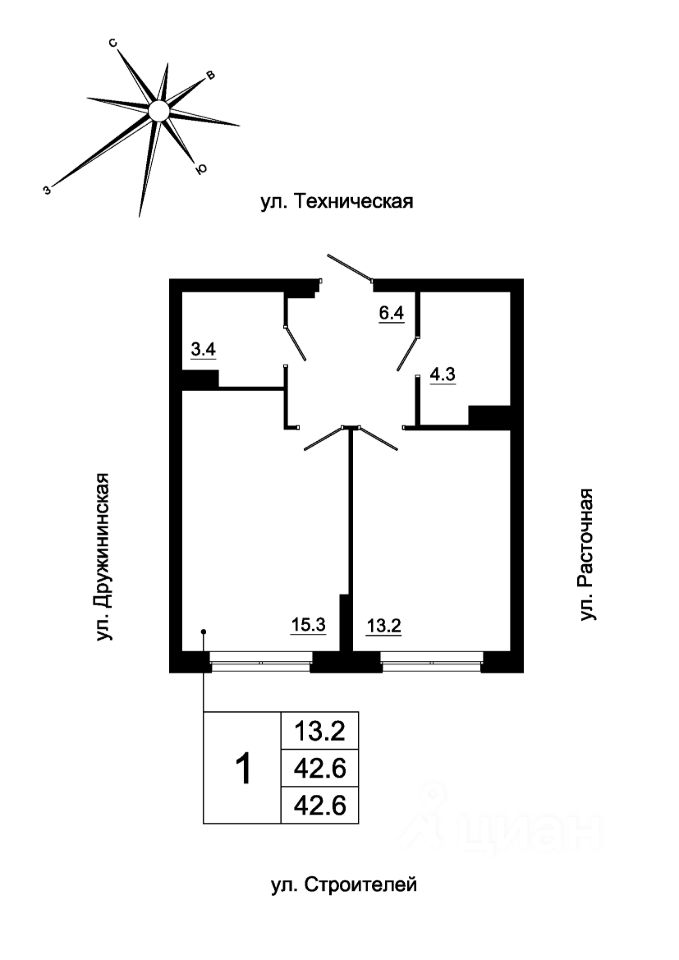 Продаётся 1-комнатная квартира в сданном доме (Червонная, 18 (Дом 5.1)), срок сдачи: I-кв. 2025, общей площадью 41.4 кв.м., на 4 этаже. Гостевые автостоянки расположены вдоль улицы Технической на прилегающей к дому территории.