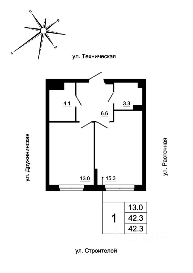 Продаётся 1-комнатная квартира в сданном доме (Червонная, 18 (Дом 5.1)), срок сдачи: I-кв. 2025, общей площадью 41.3 кв.м., на 6 этаже. Гостевые автостоянки расположены вдоль улицы Технической на прилегающей к дому территории.